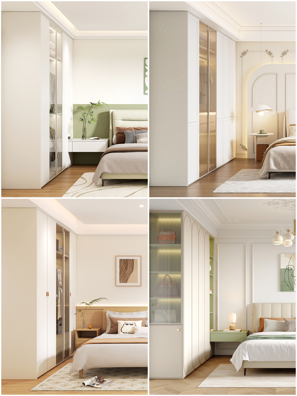 衣櫃采用(yong)懸浮設(shè)計(ji),離地輕盈通(tong)透,穿插牀(chuang)頭櫃,設(shè)計(ji)感十足✨