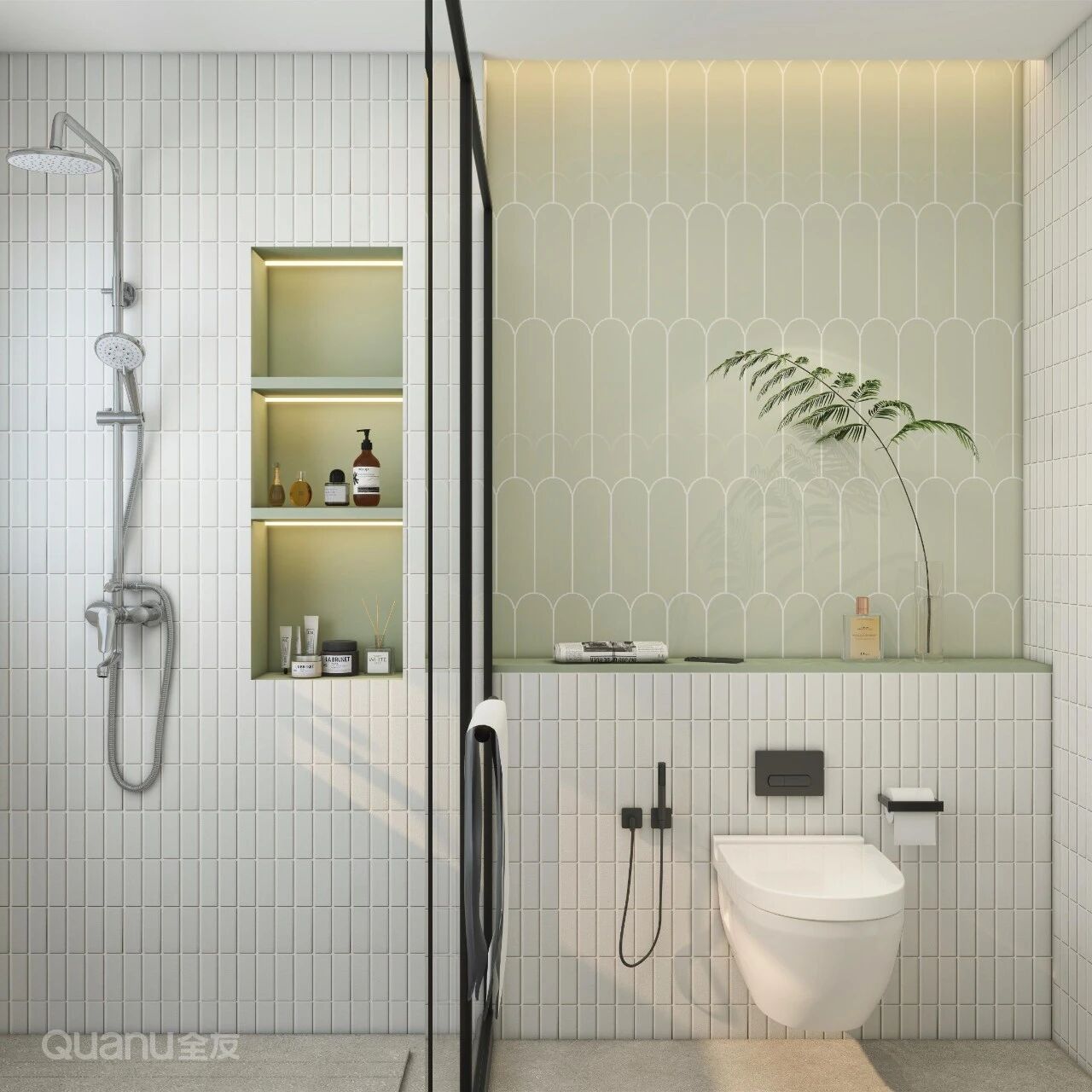 在(zai)非(fei)承(cheng)重(zhong)牆內(nei)預留15-20cm進(jin)深做壁龛,內(nei)貼防水瓷磚,并預留微小(xiǎo)坡度以(yi)防積水。此外,還可(kě)內(nei)嵌LED燈帶,不僅能(néng)補充照明,更能(néng)營(ying)造(zao)空間氛圍感。